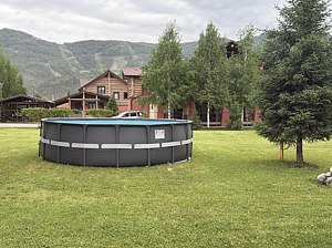 Расположен на отдельной территории, с каркасным бассейном.