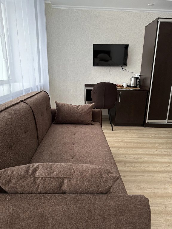 Номер уютно обставлен и оснащён необходимым, чтобы отдохнуть после долгого и насыщенного дня. Имеются телевизор. Перечисленные услуги есть не во всех номерах.