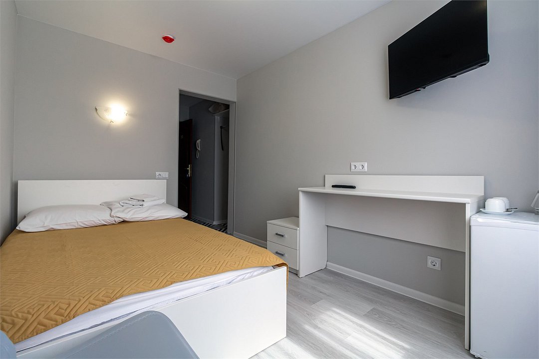 кабельное телевидение, Wi-Fi, интернет, холодильник, светильник, фен, система безопасности, обогреватель, санузел, водонагреватель, банные полотенца, гигиенические средства, полутораспальная кровать, гипоаллергенное белье, ортопедический матрас, вешалки, журнальный столик, письменный стол, багажная тумба, зеркало, ковер, чайный набор, информационная карта, меню, унитаз, раковина, питьевая вода, отопление, душ, вид на город, кулер на этаже, кресло, стаканы, стул, тумба, туалетные средства, санузел на этаже, туалет, цифровое тв, внутренний телефон, телевизор с плоским экраном, москитная сетка, шкаф-купе, номер для некурящихВ гостиничном номере