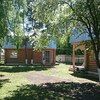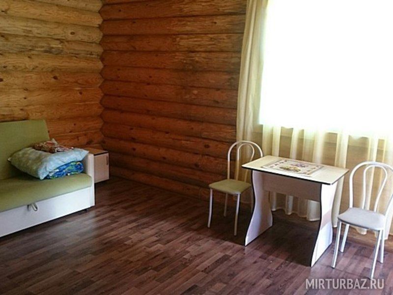 Для проживания предлагаются деревянные домики различной вместимости. Есть однокомнатные стандартные номера, и двухэтажные семейные домики. В каждом номере имеется необходимая мебель, постельное белье, обеденная зона, набор посуды, санузел и душ с горячей и холодной водой. В стандартах – меблированная веранда и доступ к общей мангальной зоне. В семейных домах оборудована полноценна кухня с плитой, установлен ТВ. В улучшенном семейном доме дополнительно обустроена индивидуальная беседка с мангальной зоной. В свободном доступе беспроводной интернет.