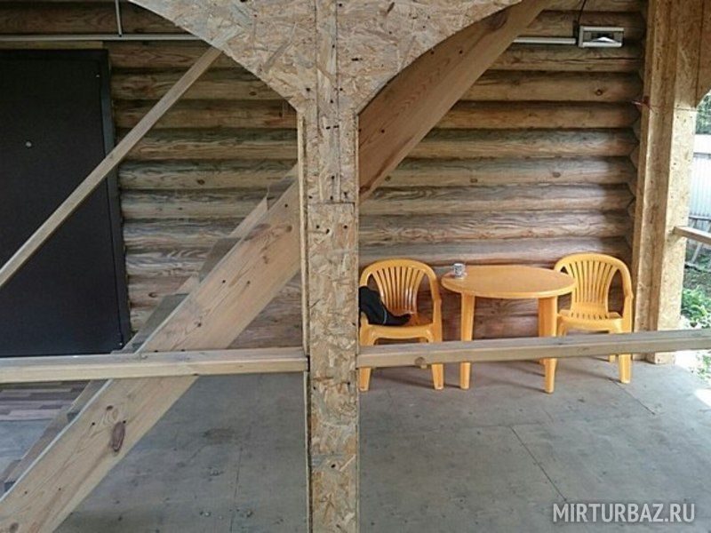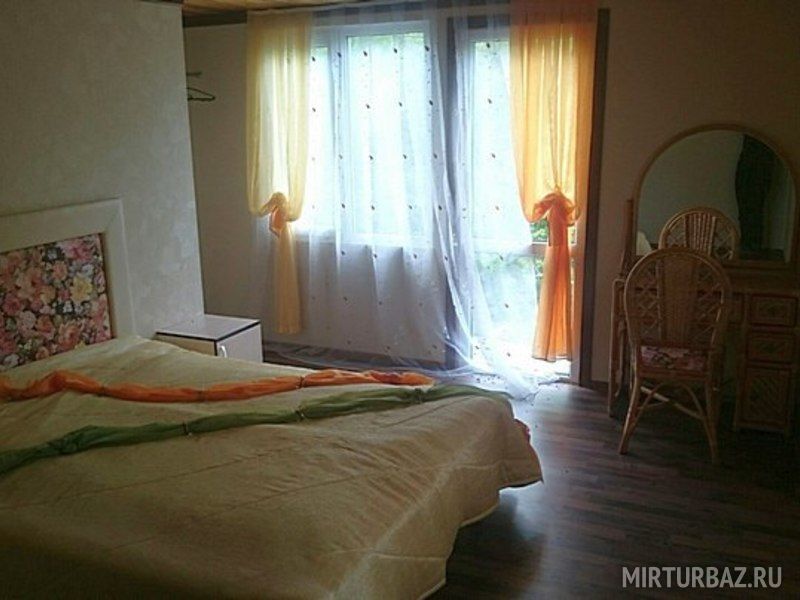 Двухэтажный номер. Два дивана, две тахты, оборудованная кухня, обеденный стол, стулья, телевизор, холодильник, чайник, плитка, посуда для приготовления пищи, сервировочная посуда, меблированная веранда, балкон, с/у, душ. Мангальная зона общая