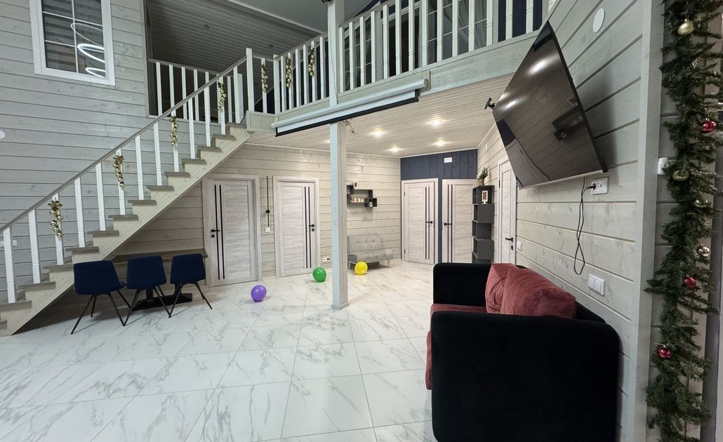 Просторный коттедж станет отличным местом для свадьбы, дня рождения или юбилея вашей мечты. Учтены все детали для комфортного празднования: от обширного зала для танцев и веселья до удобной кухни для приготовления праздничного ужина. Гостям также доступны большой экран для показа фотографий и видео, сауна, душ и бассейн для полноценного отдыха.