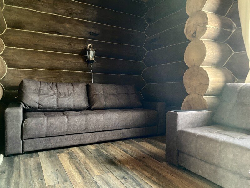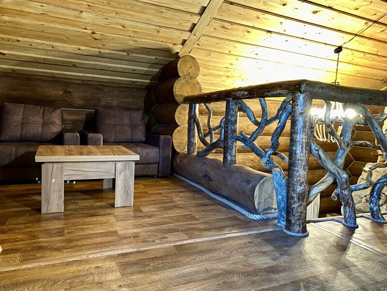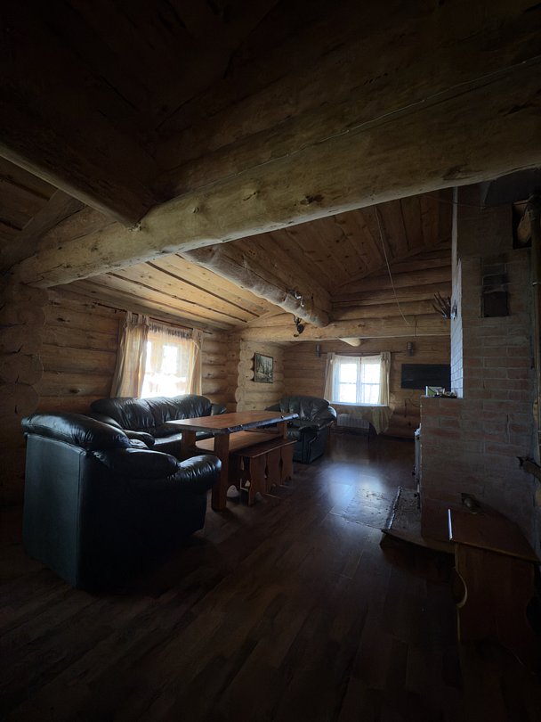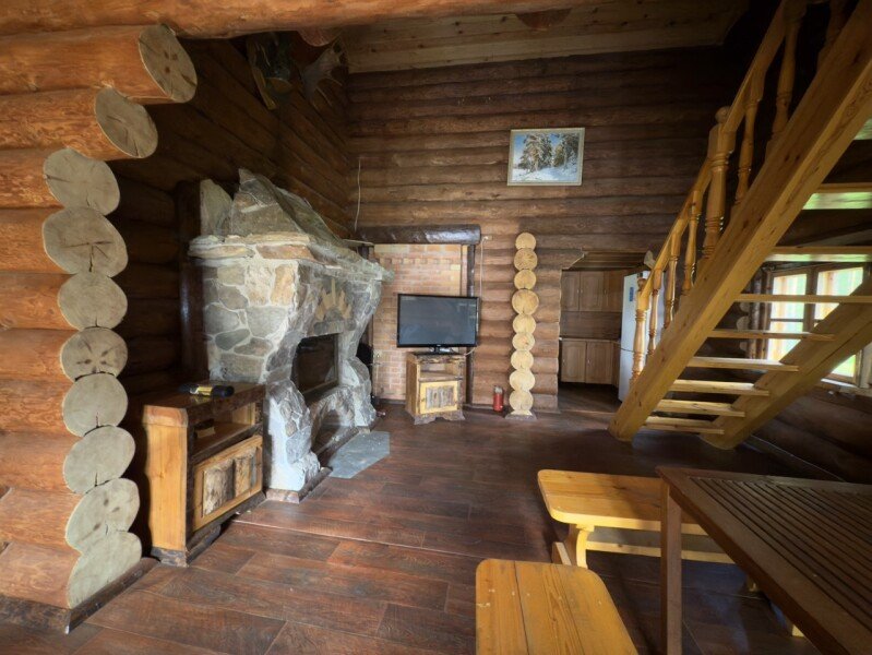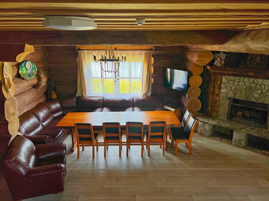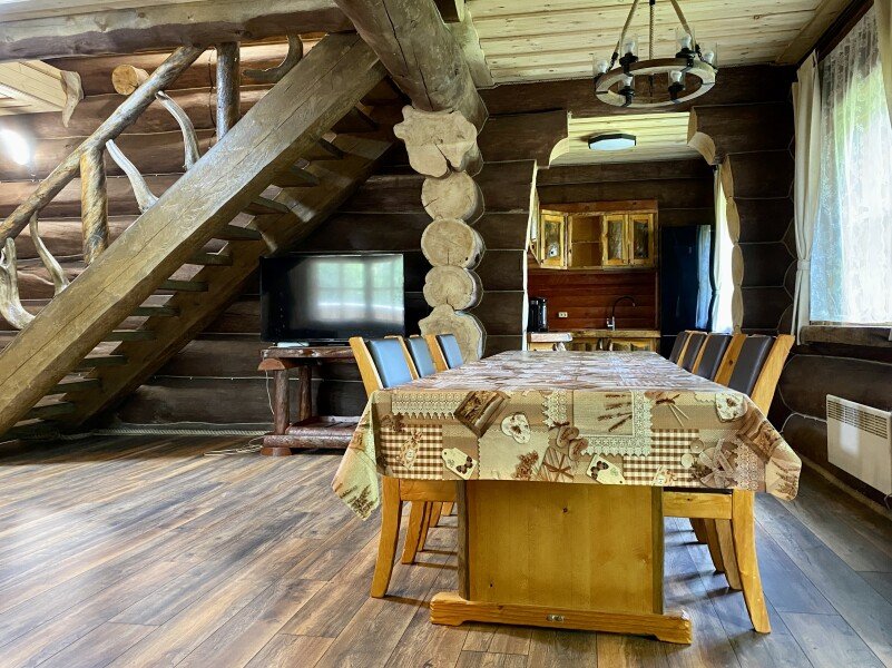 Большой двухэтажный дом с просторной гостиной, обеденным столом на 12 персон и сауной.