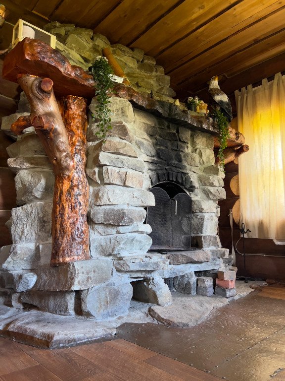 - гостиная: обеденный стол, телевизор, диван, камин;