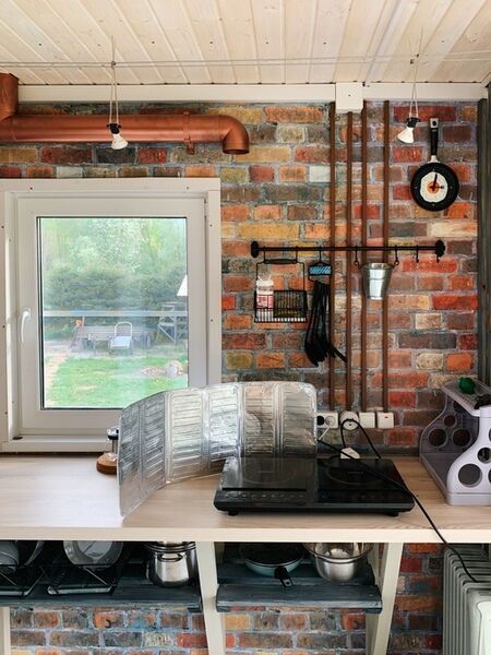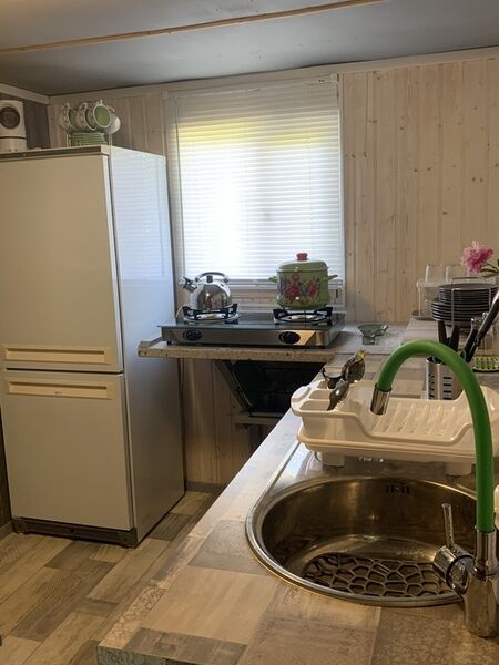 Большой дом с двумя комнатами, рассчитанный на комфортное проживание четырех человек. В домике есть все необходимое: кухня, душевая и туалетная комната. Дом теплый и подходит для проживания в любое время года.