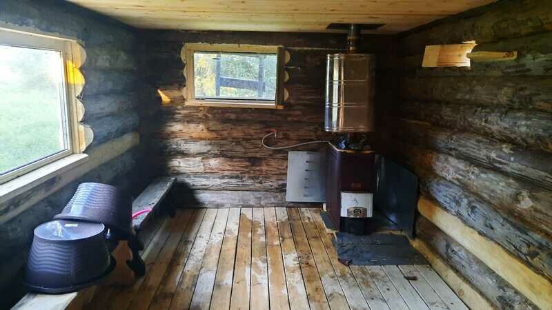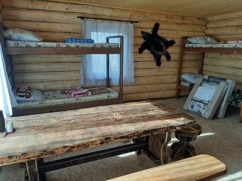 Минимальное время проживания — двое суток. Газ, освещение, беседка, дровник, гараж для снегохода, колодец. Рядом в 900 метрах есть термальный источник, где за отдельную плату можно принять ванны.