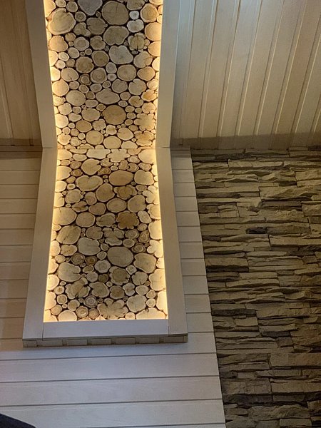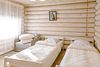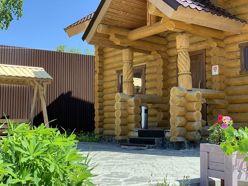 На первом этаже основного дома располагается настоящая русская парная на дровах с можжевеловым панно.