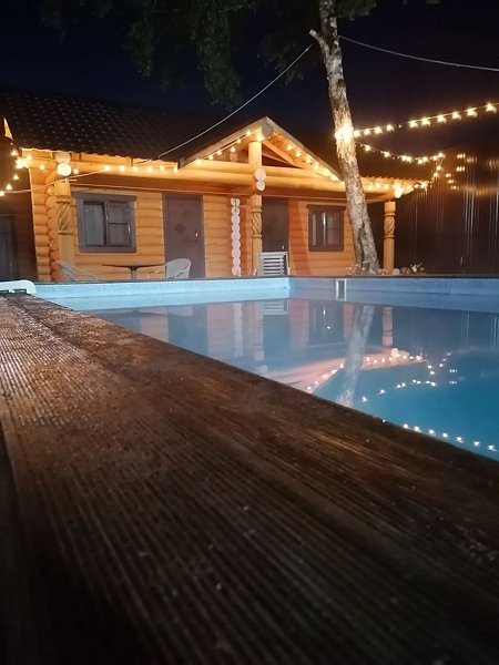 Отдыхать и плавать в бассейне будете только вы! Бассейн располагается под открытым небом и наполнен термальной водой.