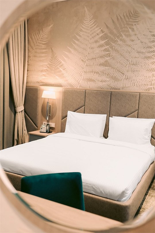 Площадь 21 квадратных метров; Двуспальная кровать QUEEN SIZE 160*200; Бесплатный высокоскоростной беспроводной интернет (Wi-Fi); Современный 55 LED телевизор, а также спутниковое телевидение; Климат-контроль с системой теплого пола; Эксклюзивные матрасы и постельное белье «Премиум класса»; Ежедневно пополняемая бутилированная питьевая вода и чайная станция; Мини-бар (за дополнительную плату согласно прайсу); Гладильная доска и утюг (по запросу); Рабочая зона с письменным столом; Электронный сейф; Телефон; Душевая кабина, фен для волос, косметическое зеркало; Махровый халат, тапочки, полотенца, люксовая косметика для душа; Круглосуточная доставка еды в номер- «room service»; Для бронирования номера данной категории с балконом, оставьте пометку менеджеру отдела бронирования «номер с балконом» заблаговременно. Для бронирование номера с ограниченными возможностями, сообщите об этом заранее сотруднику отеля.Услуги и удобства