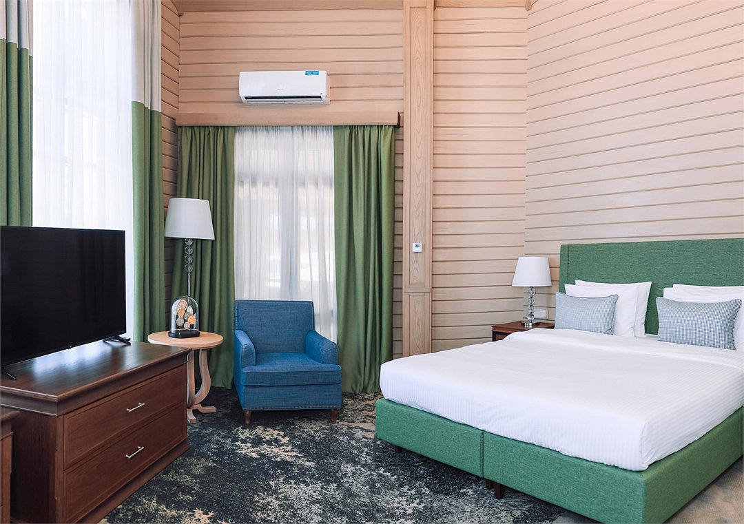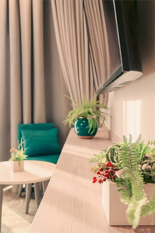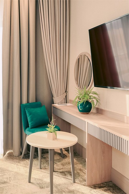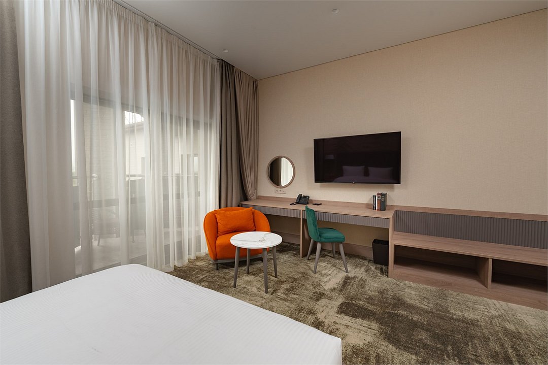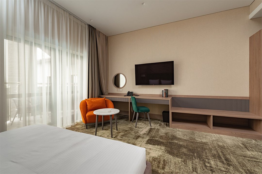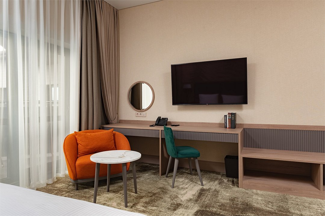 В номере вы найдёте телевизор и мини-бар. Оснащение зависит от выбранной категории номера.