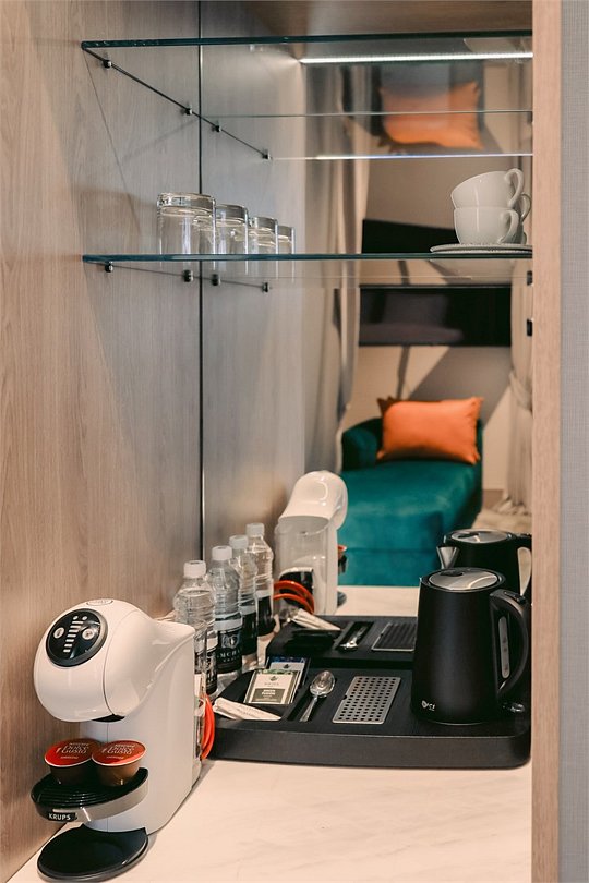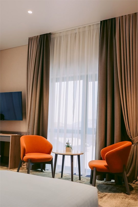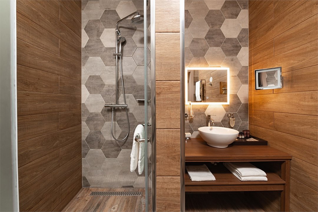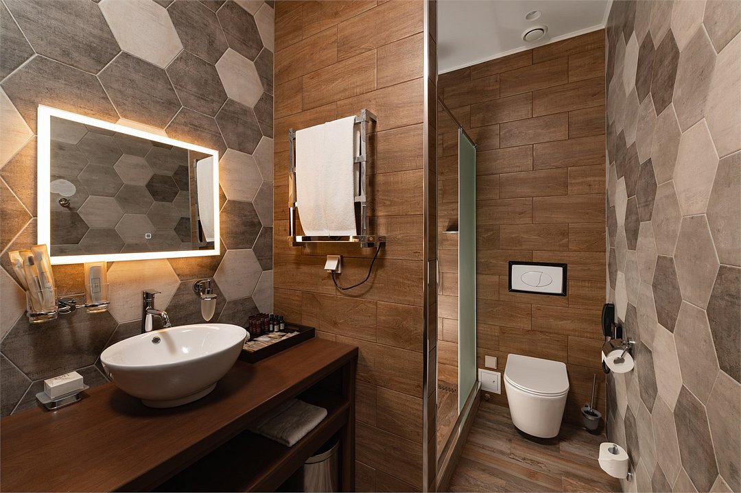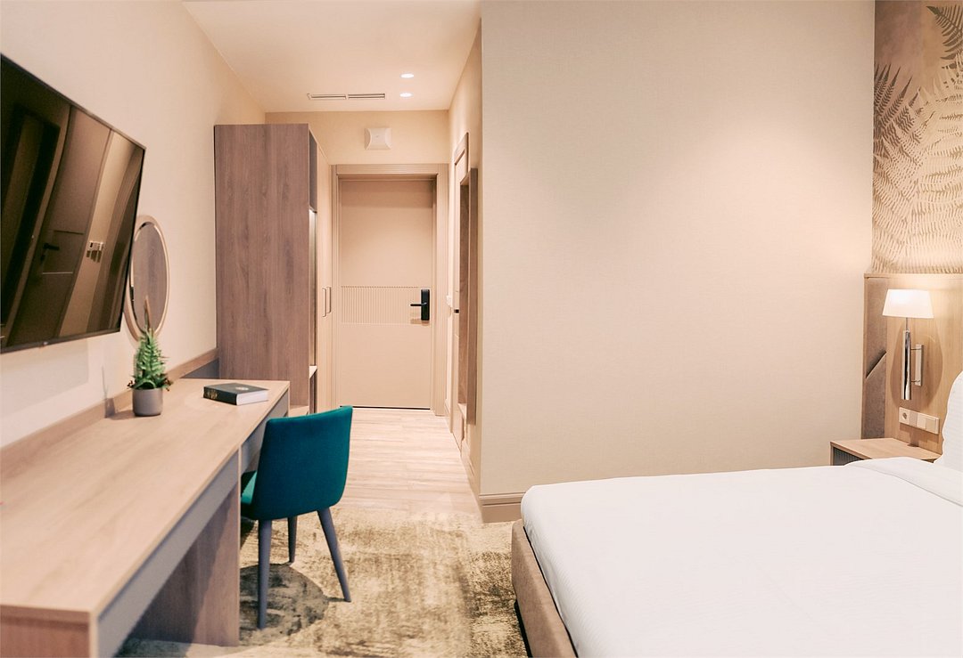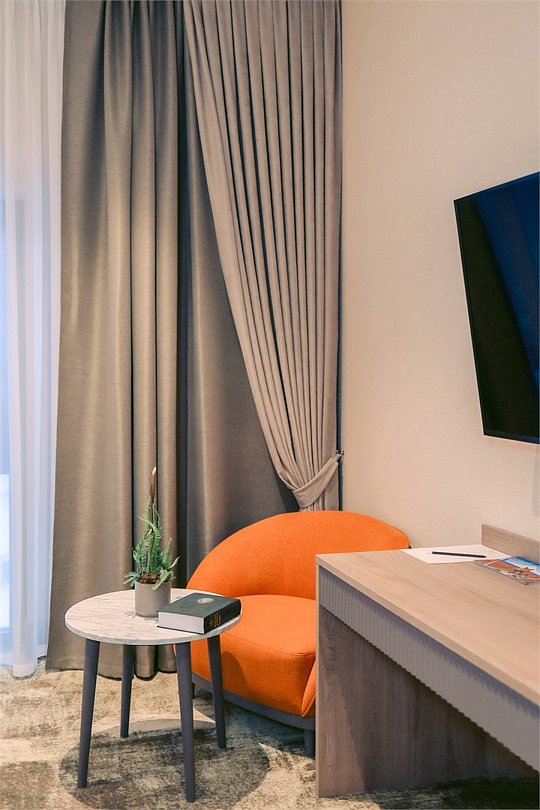В номере вы найдёте телевизор и мини-бар. Оснащение зависит от выбранной категории номера.
