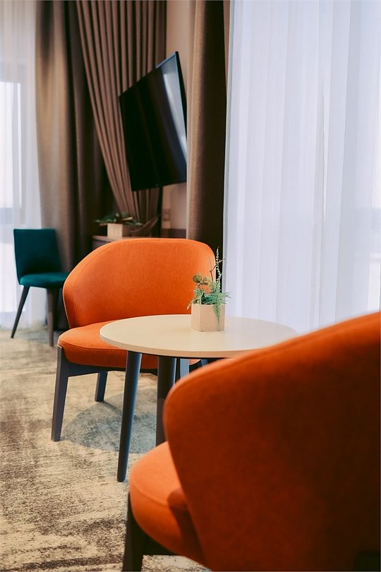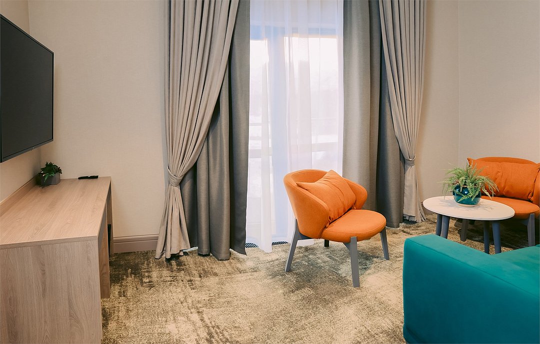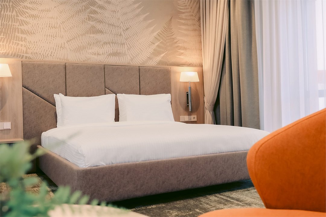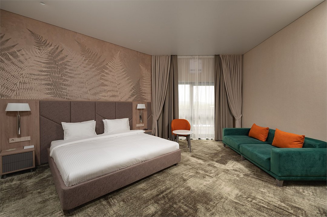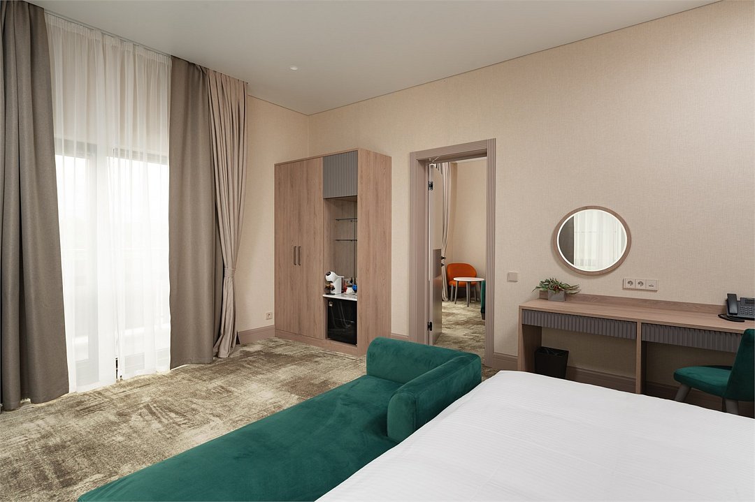 Номер категории Джуниор предлагает исключительный комфорт для каждого Гостя. Номер оснащен просторной спальней, а интерьер дополнен диваном или кроватью и просторной зоной отдыха. Замечательный выбор для семейного путешествия по Камчатскому полуострову. Площадь 34 квадратных метра; Двуспальная кровать KING SIZE 180*200; Дополнительно: диван (150*180) или кровать (single 110*200); Высокоскоростной беспроводной интернет (Wi-Fi); Современный 55 LED телевизор, а также спутниковое телевидение; Климат-контроль с системой теплого пола; Эксклюзивные матрасы и постельное белье «Премиум класса»; Ежедневно пополняемая бутилированная питьевая вода и чайная станция; Мини-бар (за дополнительную плату согласно прайсу); Гладильная доска и утюг (по запросу); Рабочая зона с письменным столом; Электронный сейф; Телефон; Душевая кабина, фен для волос, косметическое зеркало; Махровый халат, тапочки, полотенца, люксовая косметика для душа; Круглосуточная доставка еды в номер- «room service»; Возможно размещение Гостя с ограниченными возможностями; Для бронирования номера данной категории с балконом либо номера для людей с ограниченными возможностям поставьте пометку менеджеру отдела бронирования заблаговременно. Так же, обращаем Ваше внимание, что дополнительное место в данной категории может быть предоставлено в виде дивана либо в виде односпальной кровати. Для бронирования конкретного типа дополнительного размещения, просьба сообщать сотруднику отдела бронирования заблаговременно.Услуги и удобства