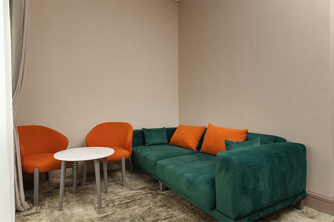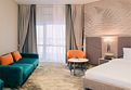 Номер предлагает исключительный комфорт для гостя. Оснащен просторной спальней, интерьер дополнен диваном и просторной зоной отдыха.
