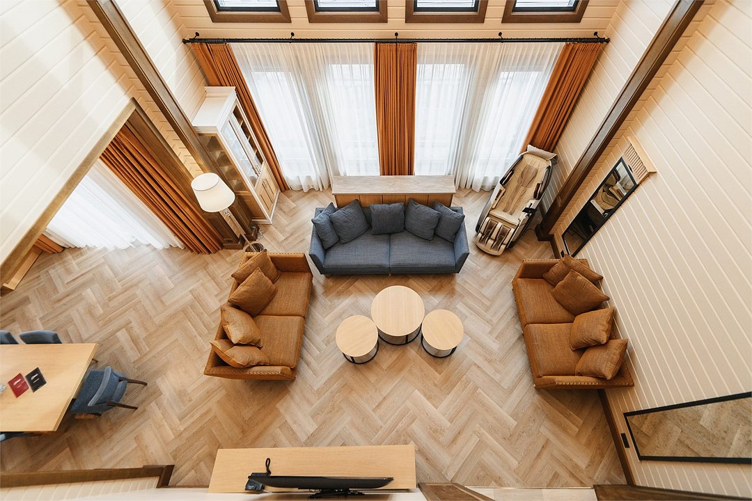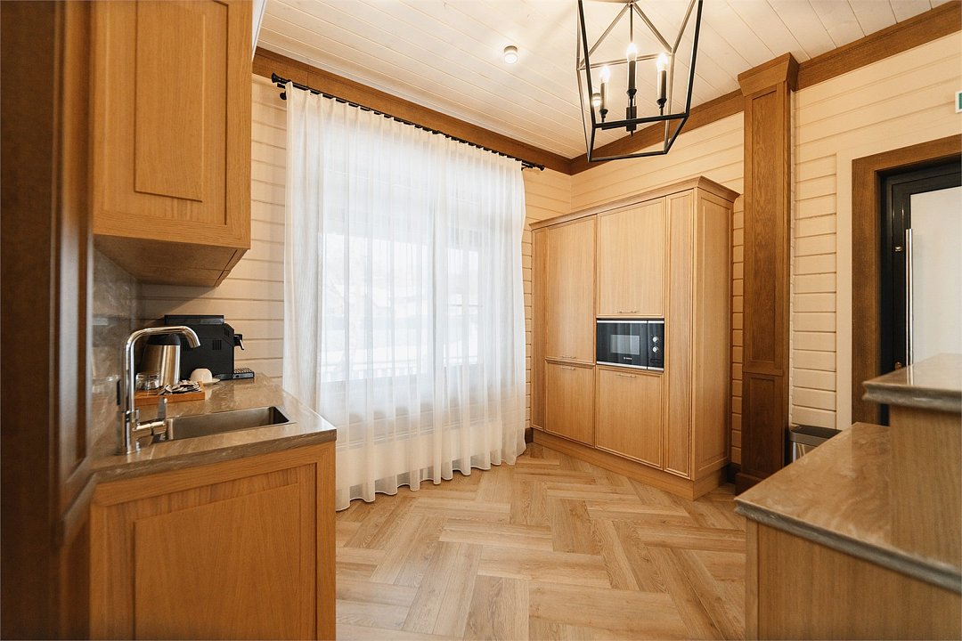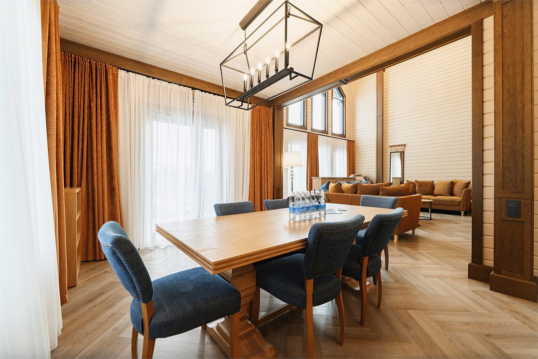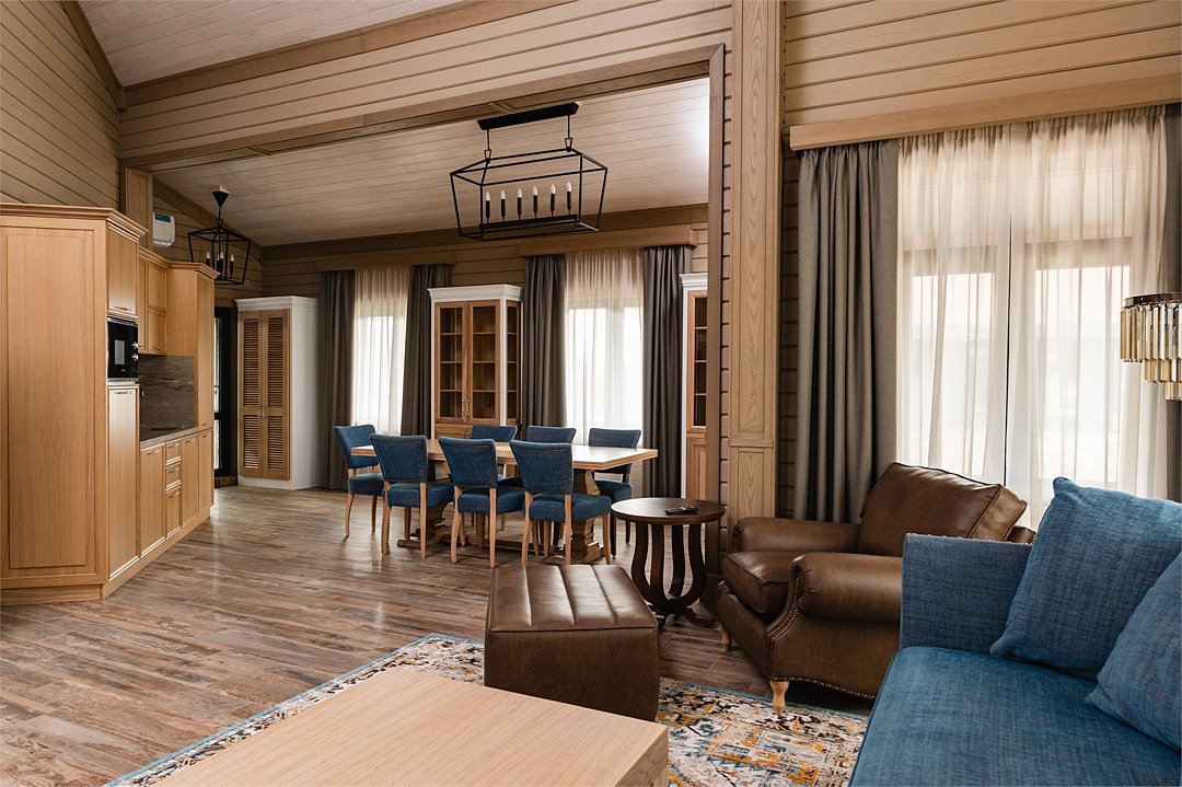 100 квадратных метров общего пространства с дизайном в стиле альпийской деревни, с собственным термальным бассейном и шикарным видом на Вилючинский вулкан. Современное шале исполнено из экологичных материалов и оснащено всем необходимым для высококлассного отдыха.
