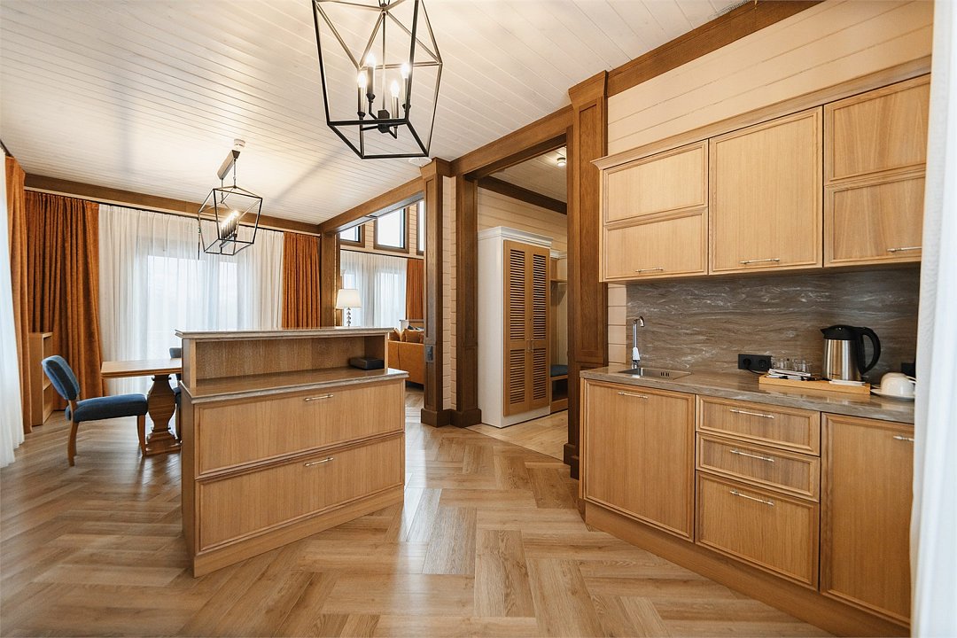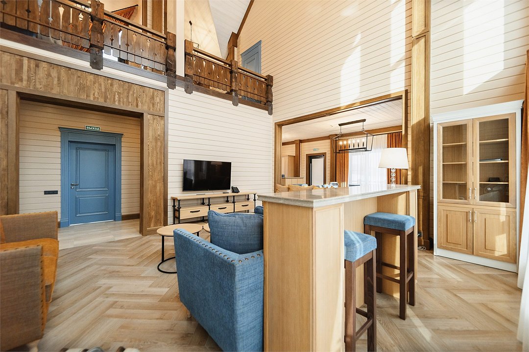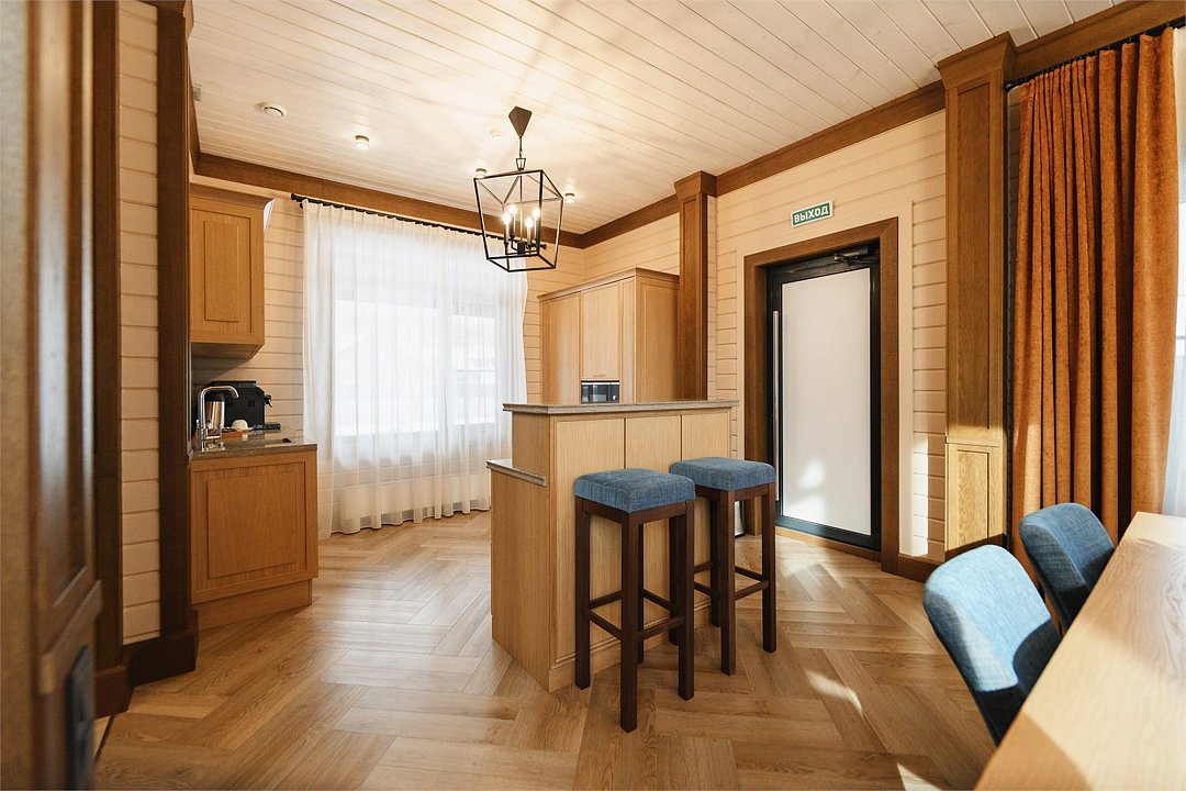 98 квадратных метров общего пространства с дизайном в стиле альпийской деревни на берегу реки Карымшина, с собственным термальным бассейном и шикарным видом на Вилючинский вулкан. Современное шале выполнено из экологичных материалов с учетом модных тенденций и оснащено всем необходимым для высококлассного отдыха. Общая площадь 97 квадратных метров, 2 комнаты; Индивидуальный термальный бассейн с собственной террасой; Мини-кухня с микроволновой печью и холодильником; Двуспальная кровать KING 200*190; Диван; Высокоскоростной беспроводной интернет (Wi-Fi); Современный 55 LED телевизор; Спутниковое телевидение; Климат-контроль и система теплого пола; Эксклюзивные матрасы и постельное белье «Премиум класса»; Ежедневно пополняемая бутилированная питьевая вода и чайная станция; Капсульная кофемашина; Мини-бар (за дополнительную плату согласно прайсу); Гладильная доска и утюг; Удобный письменный стол; Электронный сейф; Телефон; Душевая кабина, фен для волос, косметическое зеркало; Махровый халат, тапочки, полотенца, люксовая косметика для душа; Возможность предоставления дополнительной детской кроватки; Круглосуточная доставка еды в номер- «room service»;Услуги и удобства