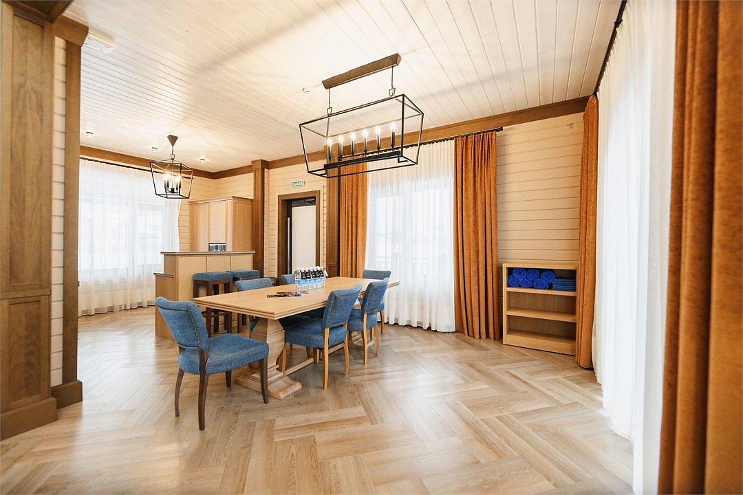 К услугам: мультифункциональное пространство с роскошным панорамным видом на дремлющие вулканы вместимостью до 20 человек, двухэтажный ресторан Беринг, обособленный банкетный зал.