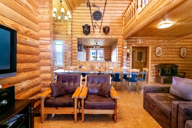 Для размещения посетителей возведены два благоустроенных коттеджа. Дом имеет два этажа, две террасы. На первом этаже имеется видеотехника, музыкальный центр и караоке. В холле первого этажа имеются душевая, туалет, сауна. Большой дом идеально подходит для проведения банкетов.