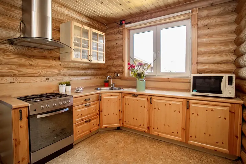 Кухня в коттедже оснащена всем необходимым для приготовления пищи.