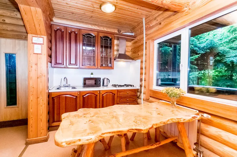 В домах оборудованы кухни для гостей. При необходимости можно заказать готовую еду. Для приготовления шашлыков на площади комплекса имеется зона с мангалом и беседкой. Это идеальное место для проведения семейных праздников с друзьями и детьми.
