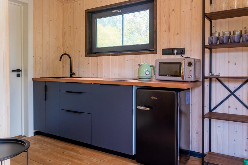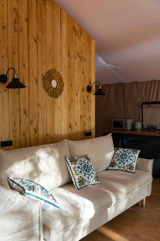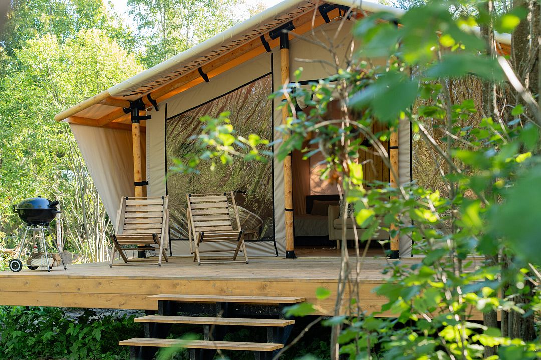 У каждого летнего шатра есть свой мангал и решетка для приготовления еды, а в общей беседке — холодильник и микроволновая печь. В домах на озере есть полноценная кухня, а в сафари-шатрах — мини-кухня. На озере можно взять напрокат лодки, каяки и сапборды. В 50 метрах от озера расположены деревянные бани с парными на дровах, где можно расслабиться и, при желании, воспользоваться горячей или холодной купелью.