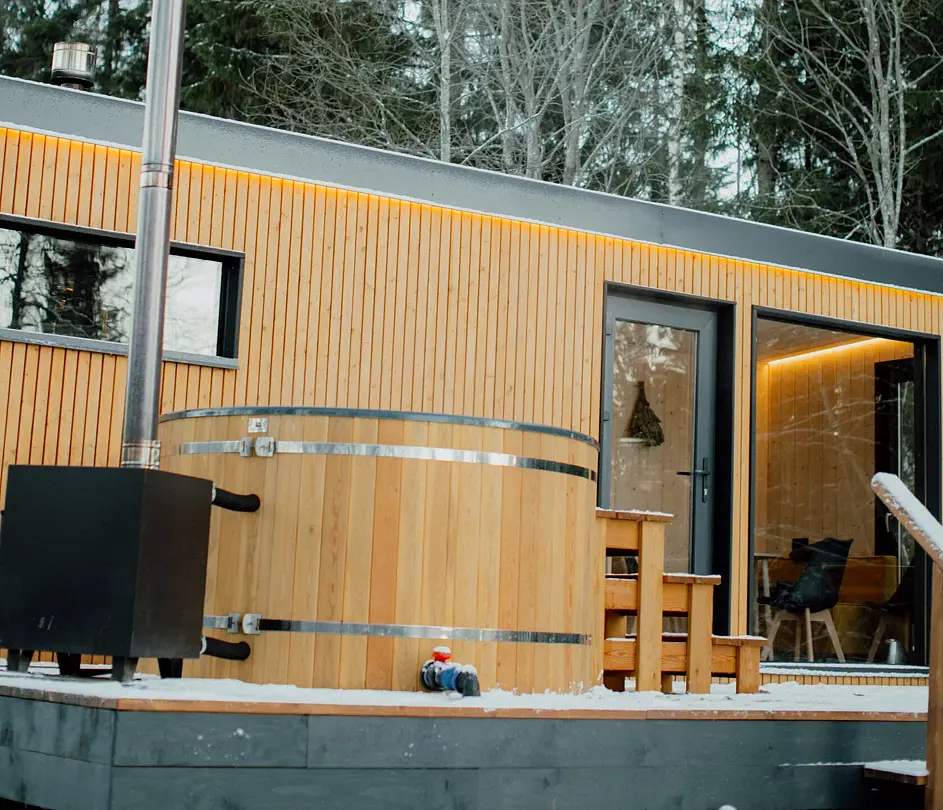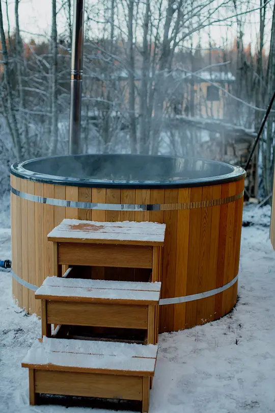 Можно выбрать холодную купель для освежения или горячую для расслабления, а посещение бани добавит дополнительный комфорт к незабываемому опыту. В стоимость входит использование помещения бани: комната отдыха с чайным уголком, душ, туалет, терраса и шезлонги.