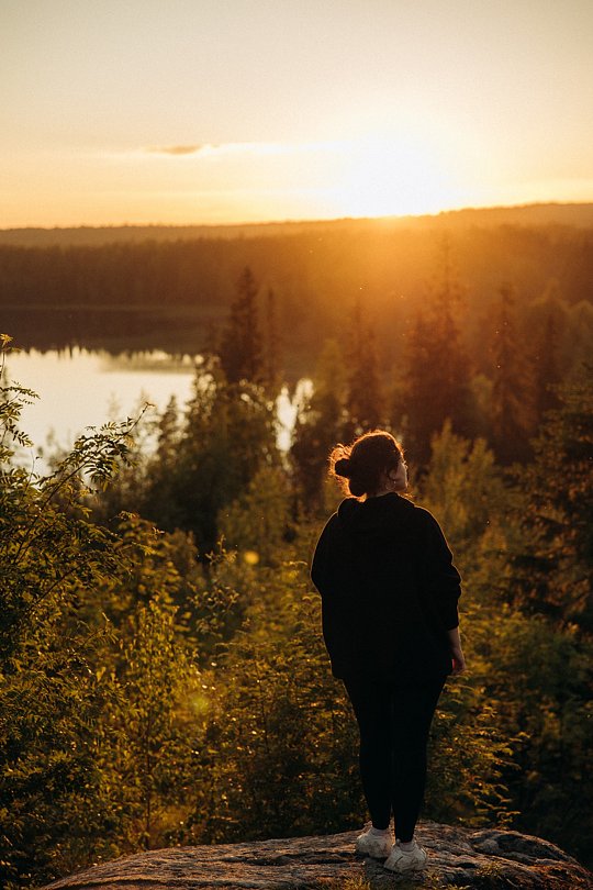 Добраться до глэмпинга «Хюгге Кэмп Карелия» можно несколькими способами. Если вы едете на личном автомобиле или каршеринге, следуйте по шоссе «Сортавала» до поселка Мийнала — это займет около 3,5 часов от Санкт-Петербурга. В конце поселка будет поворот налево, после чего вам нужно проехать еще 10 км по хорошей грунтовой дороге, следуя указателям «Хюгге Кэмп» и держась левее.
