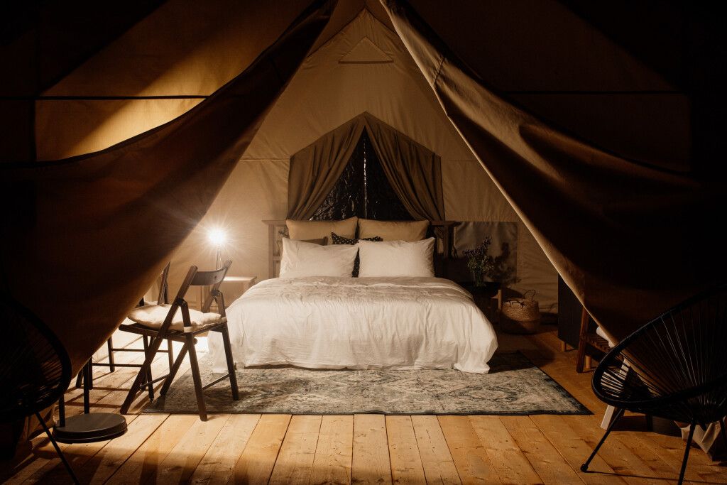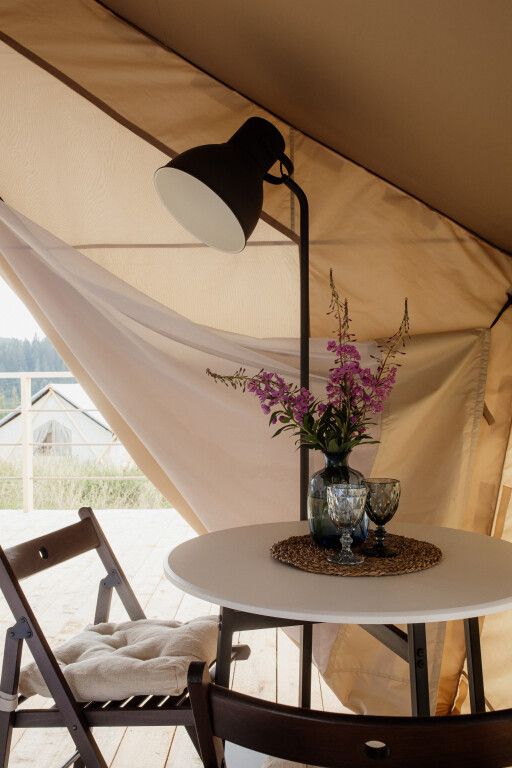 Тепло ли в палатке? Да. Каждый сафари-тент утеплен, чтобы вы не замерзли ни поздней осенью, ни майской ночью. Утепленный пол, дополнительный слой из синтепона на палатку и мощные электрические тепловые пушки на 3 кВт. Гостям было тепло даже в ноябре.