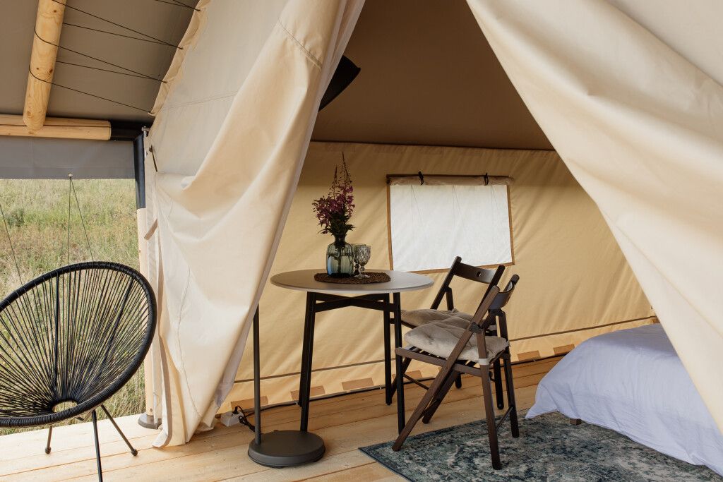Комфортный сафари-тент оборудован всем необходимым для полного отключения от городских забот.