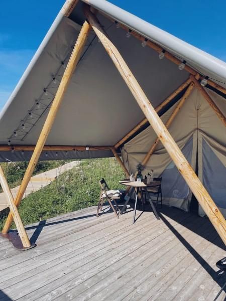 Улучшенный сафари-тент с возможностью комфортного размещения до четырёх человек. Прекрасный вариант для гостей с детьми.