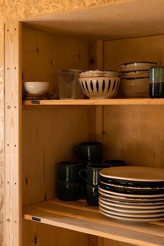 Внутри тентов вас ожидают уют и организованное пространство: электричество, вешалка и комод для вещей, обогреватель, стол, два источника света. На кровати удобный матрас, большое одеяло, множество подушек и простыня c подогревом. Вам обеспечен безмятежный сон! В отдельном утеплённом здании находятся туалет и душ со всеми необходимыми принадлежностями. В общей зоне установлены холодильник, плита, имеется набор посуды для приготовления и приема пищи.