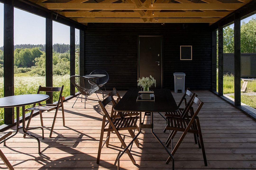 В распоряжении гостей на территории площадка для барбекю, костровая зона и горячий банный чан с ароматными травами под открытым небом. Чтобы разнообразить отдых, можно посетить красивейшие места, расположенные недалеко от глэмпинга — Долина водопадов, Ладожские шхеры, Карельский зоопарк, Рускеала.