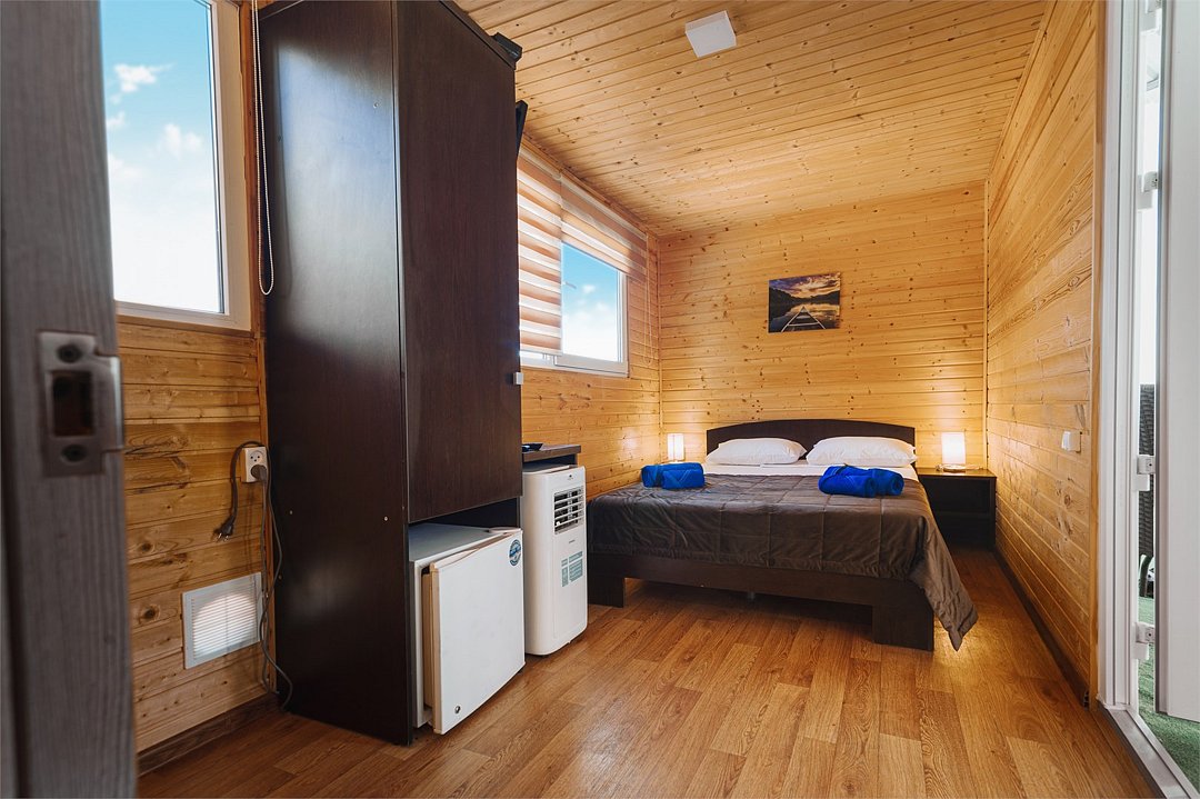 Уютный номер с отделкой из дерева с красивым видом на море. В номере 2-х ярусная кровать, подойдет для семьи с ребенком. В номере есть все необходимое для комфортного проживания. Расположен на 1-м эт.Услуги и удобства