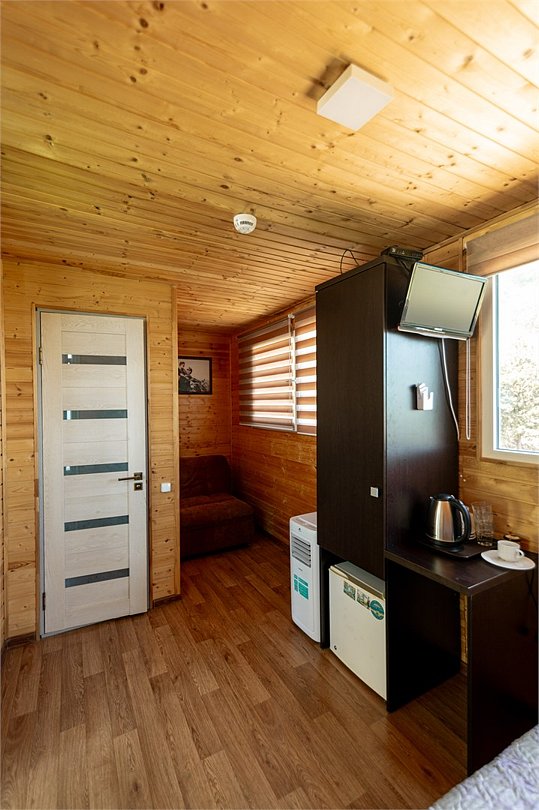 Уютный номер, выполнен с отделкой из дерева, подойдет для семьи из 2-3х человек. В номере есть все необходимое для комфортного проживания. Душ общий на этаже, в 10-и метрах от номера, санузел с раковиной в номере. Расположен на 2-м этажеУслуги и удобства