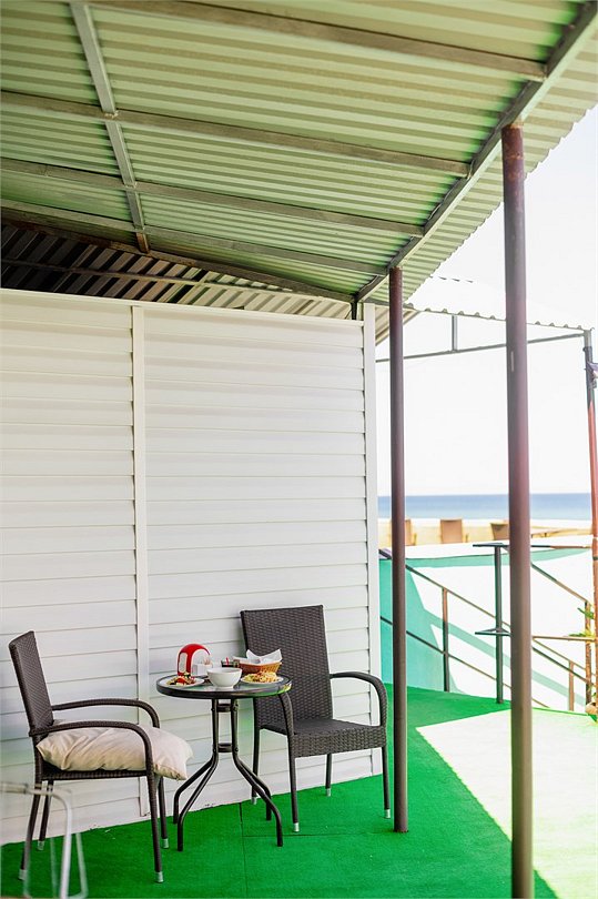 Wi-Fi, холодильник, кондиционер, настольные лампы, фен, утюг, банные полотенца, пляжные полотенца, терраса, две односпальные кровати, гладильная доска, чайник, ковровое покрытие, отдельный вход в номер, общая ванная комната, туалетные средства, санузел на этаже, сушилка для белья, телевизор с плоским экраном, гостиничная парфюмерия, душ на этаже, частичный вид на море, уборка номера, уличный стол и стулья из тикового дерева, затемняющая штора, окна от пола до потолка, можно с питомцамиВ гостиничном номере