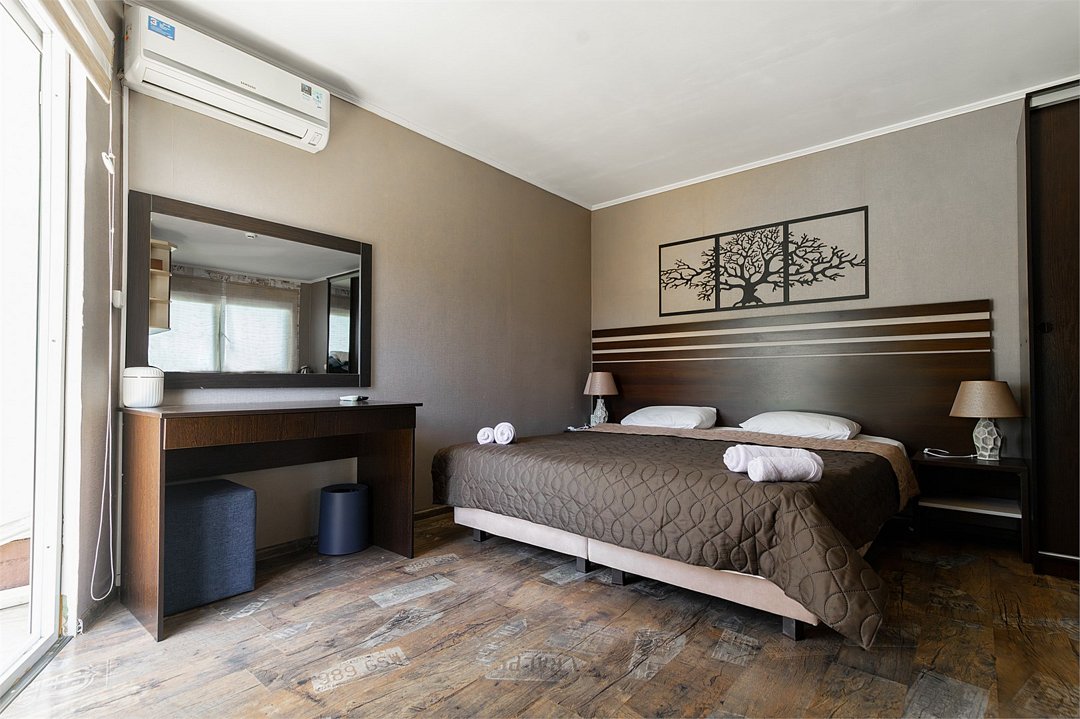 2-х комнатный семейный номер оснащен современной мебелью, кухней с необходимым инвентарем, кондиционером, уютной обеденной зоной. Прекрасно подойдет для семьи из 3-5 человек. Расположен на 1-м этаже.Услуги и удобства
