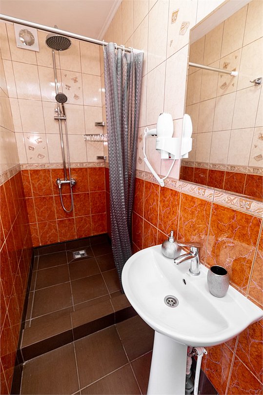 Компактный и уютный однокомнатный номер на двоих человек с двумя спальными местами, расположен на 1-м этаже. Санузел с раковиной в номере. Душ общий – на этаже, на 2-а номера, в 2-х метрах.Услуги и удобства