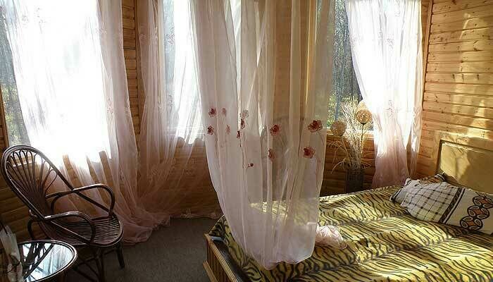 Комнаты оборудованы 2-х спальными кроватями, плетеной мебелью, зеркалом, вешалкой и телевизором. В комнатах установлены индивидуальные регуляторы температуры, выставить комфортный для себя температурный режим может каждый.