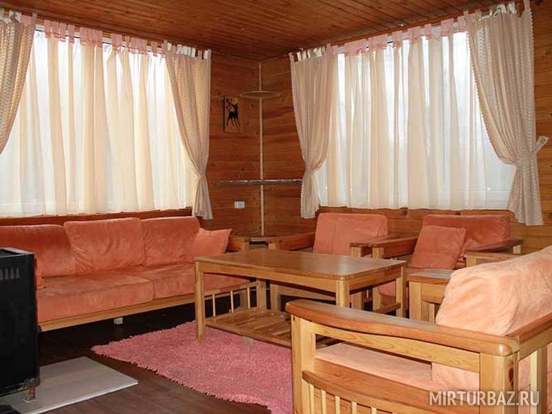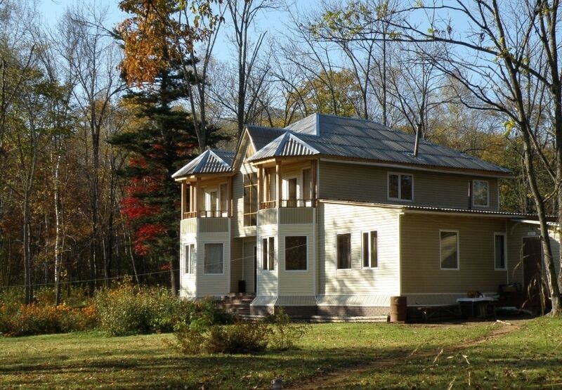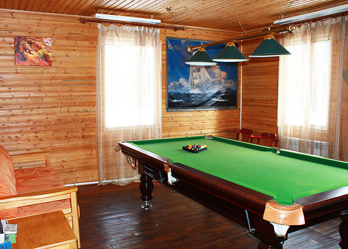 Большой дом в 2 этажа, в 10 жилых комнат (4 больших комнаты на 1-ом этаже, 6 комнат поменьше на втором этаже, 2 из них с балконами), VIP зальчика для посиделок, бильярдной, зоны отдыха с библиотекой и холла с камином, большим телевизором (спутниковое телевидение, DVD) и обеденной зоной. Окна в доме пластиковые, полы покрыты ковровым покрытием, отопление в доме осуществляется по современным технологиям. Дом теплый, в зимнее время отапливается камином, батареями и инфракрасными обогревателями. В доме ходят в тапочках.