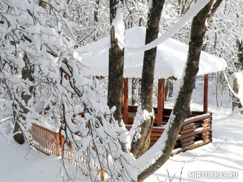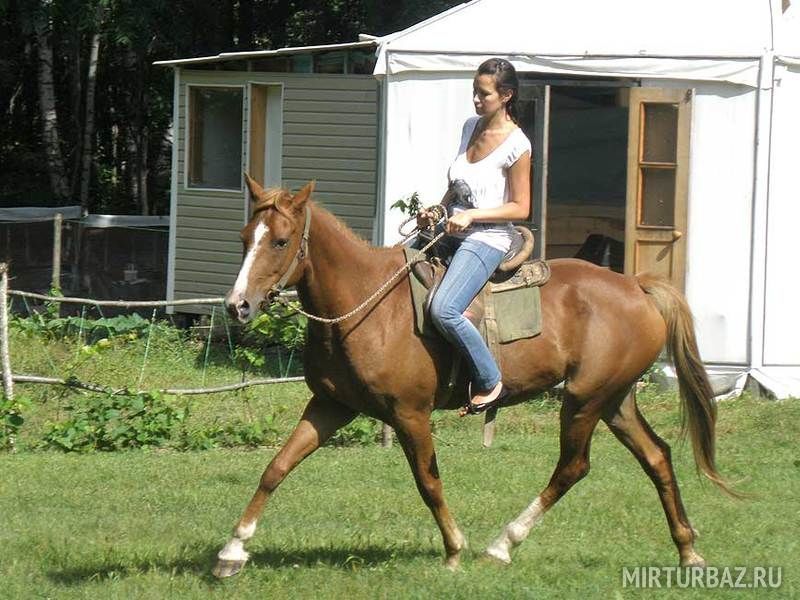 Экскурсионная программа обширная – пешие и конные походы по местным природным достопримечательностям, верёвочный парк, можно посетить мини-ферму, а в зимнее время – лыжный маршрут на 7 км или каток. Ещё есть тир, волейбольная и баскетбольная площадки, квадрациклы, беседка с настольным теннисом, инфракрасная сауна и русская парная с купелью.