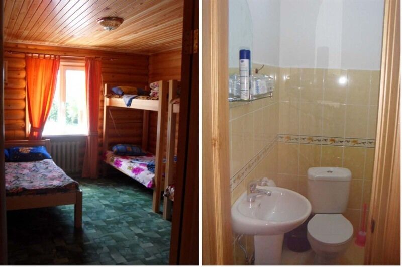 Двуспальная кровать, две односпальные двухъярусные кровати, санузел на этаже (туалет, раковина, горячая холодная вода). Постельное белье и постельные принадлежности предоставляются.