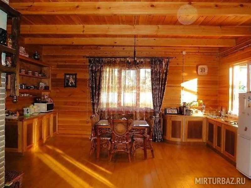 Также в доме имеется открытая терраса с обустроенной зоной отдыха — стол, лавки.