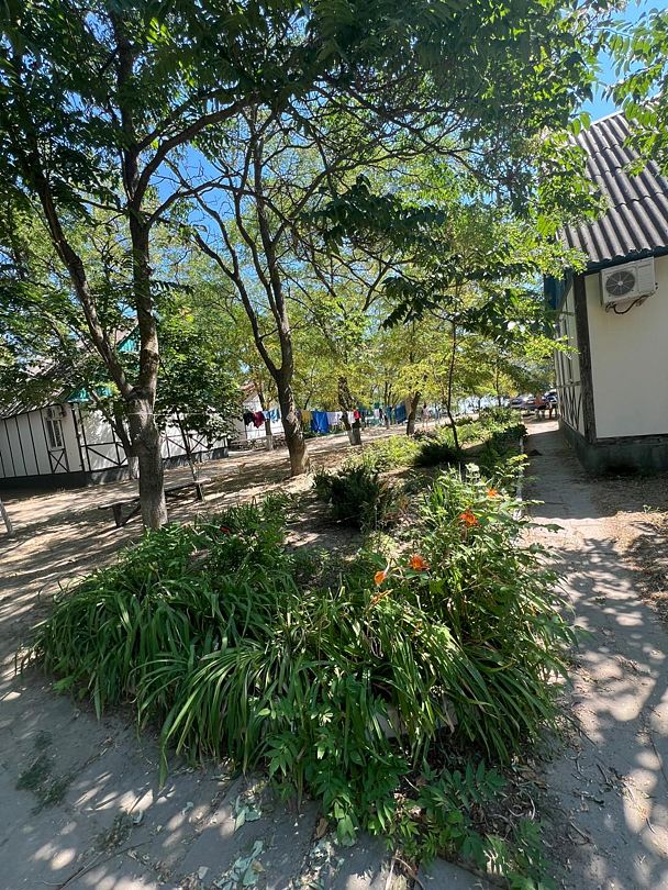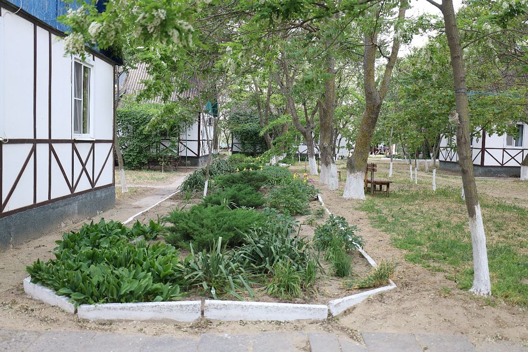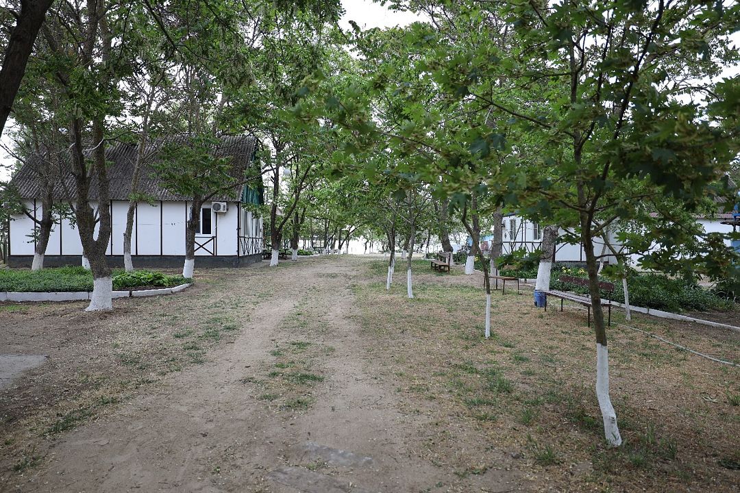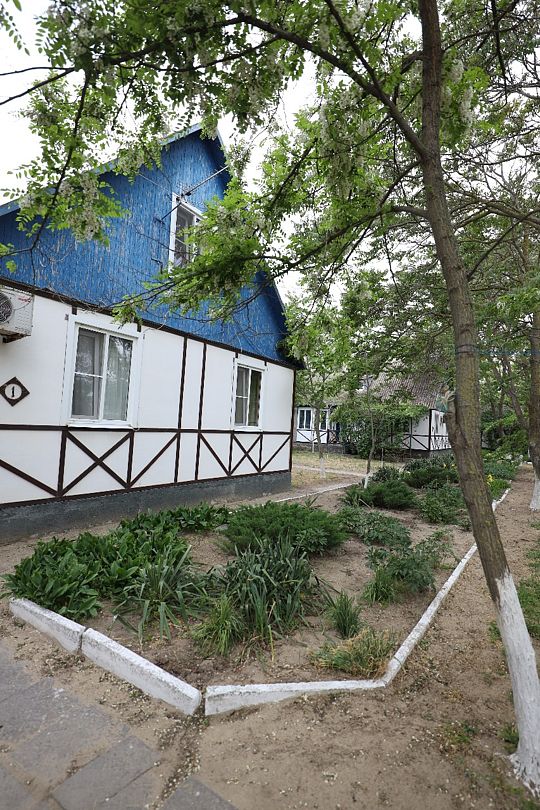 Курортный комплекс имеет огороженную территорию и находится в лесополосе. Имеется собственный песчаный пляж. Заход в море очень плавный и ровный, отсутствуют ямы и впадины. Азовское море характеризуется теплой, чистой водой. Территорию пляжа тщательно убирают. Это не маловажный фактор для отдыха с детьми. Для бронирования гостям предоставляются уютные номера различной вместимости. Для приготовления пищи имеются кухни и мангальные зоны.