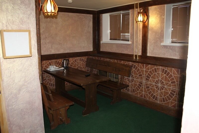 Инфраструктура: зона отдыхаРассчитана на небольшую компанию, состоящую из 4 человек. Здесь вы сможете не только попариться, но и выпить чашечку чая в специально оборудованной комнате отдыха – столик, чайник и телевизор прилагаются!