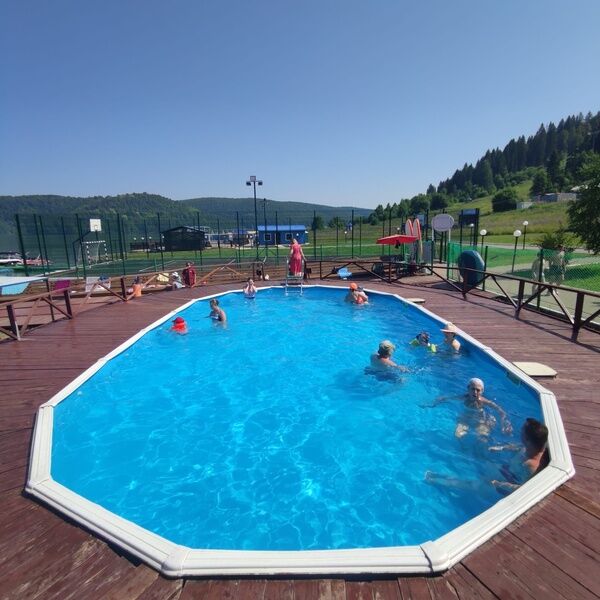 Тип бассейна: открытый бассейнВода в бассейне: подогреваемый бассейнРядом с бассейном: шезлонги, полотенцаТемпература в бассейне: 20 °CВремя работы: от 10:00 до 22:00Благодаря системе подогрева плавательный бассейн начинает работу ещё весной. Для гостей, проживающих в гостиничном комплексе теплые бассейны весь май работают бесплатно.