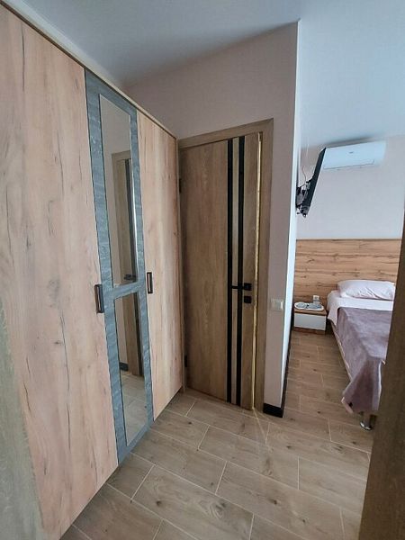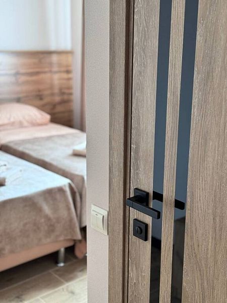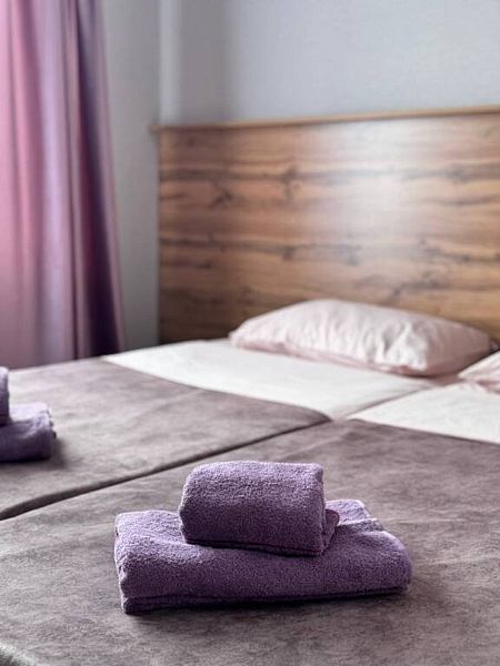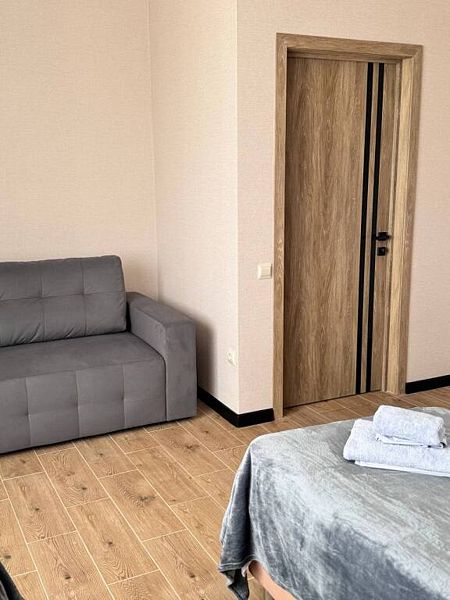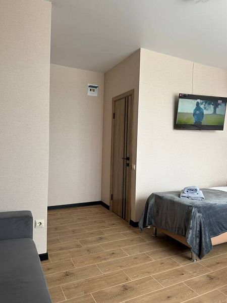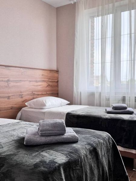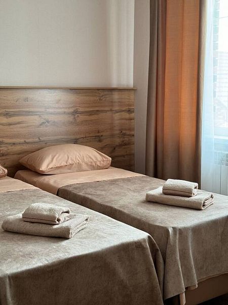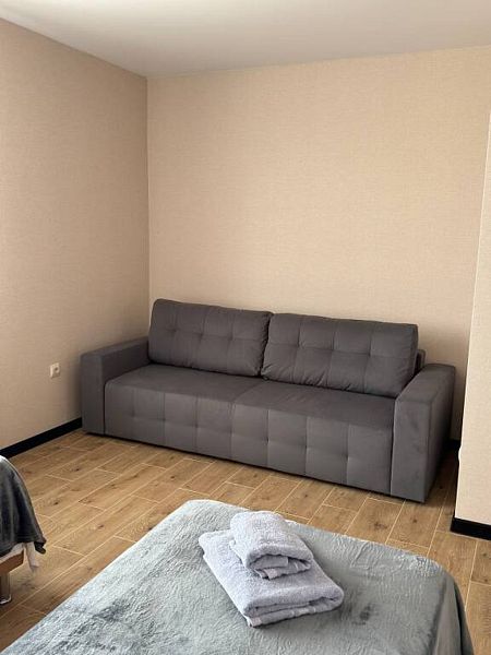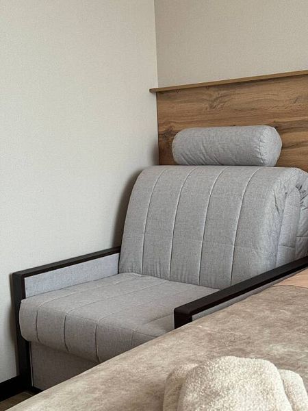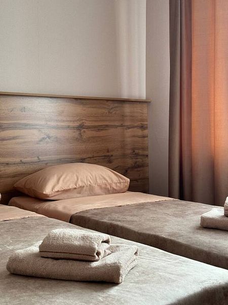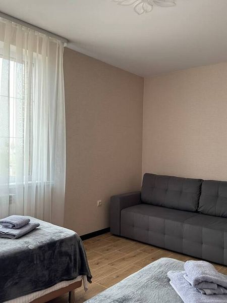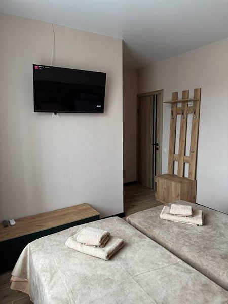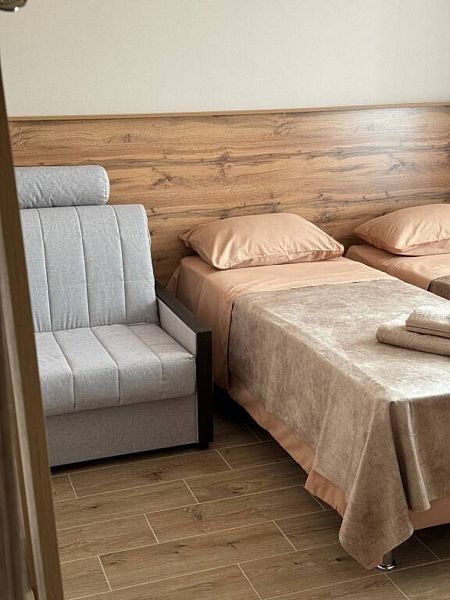 В номере имеется возможность размещения на двуспальном диване с пружинным блоком (ширина спального места 155см) и на спальных местах: как две односпальные кровати либо одна двуспальная кровать (две односпальных зафиксированных с шириной спального места 160см) для максимального восстановления после утомительной дороги. Номер так же оснащен SMART TV, у каждого гостя будет доступ в интернет что бы всегда оставаться на связи, сплит-система.