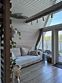 Для размещения предусмотрено 4 спальных места: двуспальная кровать размера King Size на втором этаже и раскладной диван на первом.