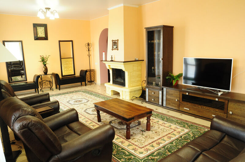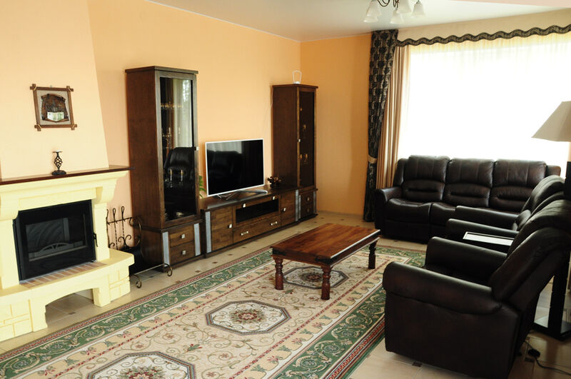 кухня, гостинная с камином, 2 туалета, душевая кабина, стиральная машина.