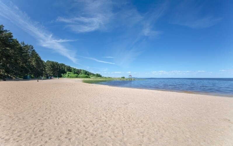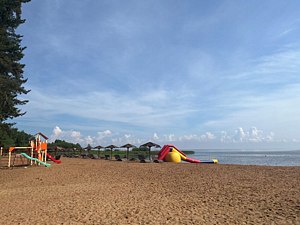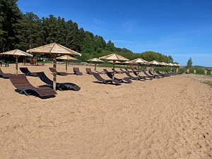Тип пляжа: песчаныйБлагоустроенный пляж для отдыха с мелким привозным песком, протяжённостью 150 метров вдоль береговой полосы Псковского озера — крупнейшего водоёма региона. Пляж оснащён стационарными зонтиками, шезлонгами, кабинками для переодевания и пляжным душем, а в шаговой доступности находится санузел с горячей водой.