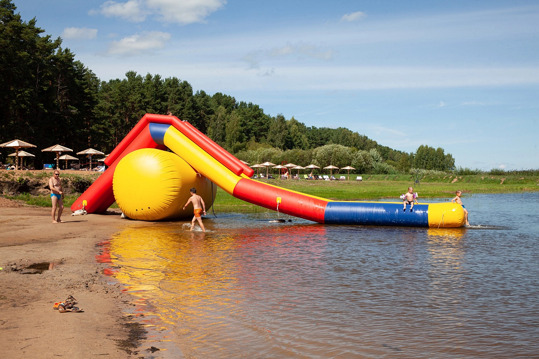 Семейный отдых станет ещё комфортнее благодаря детской площадке, надувному аквапарку с водным спуском и выделенной детской зоне купания («Лягушатник»), где вода прогревается быстро и глубина увеличивается постепенно, создавая безопасные условия для самых маленьких.