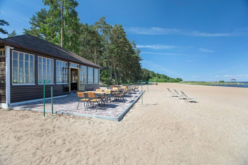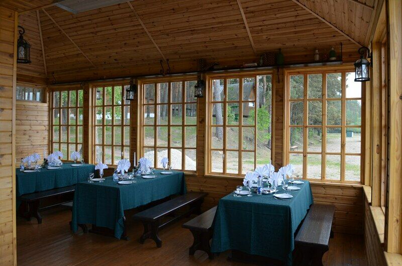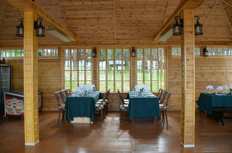 Кроме того, к услугам гостей предлагается русская баня с бассейном и ледяным ведром-перевертышем, баня по-черному в старых русских традициях, беседки с мангалами, благоустроенный песчаный пляж, детские и спортивные площадки.